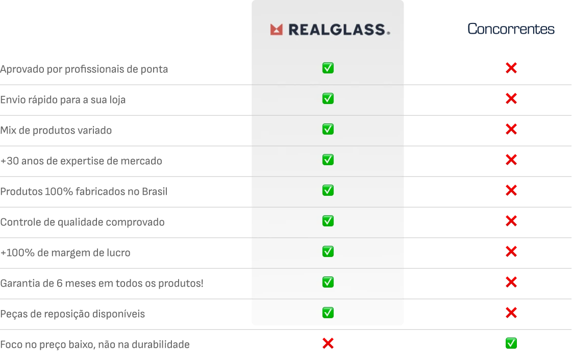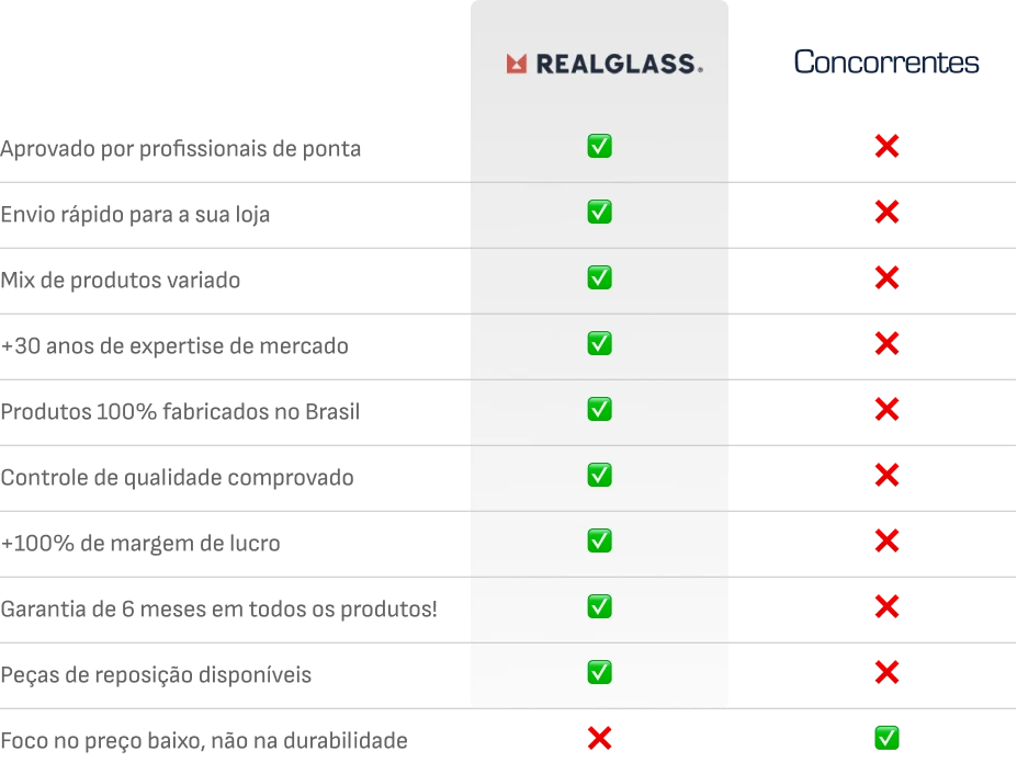 Sim! Ao escolher a RealGlass, você garante 6 meses de proteção contra qualquer defeito de fabricação. Além disso, garantimos a reposição de peças e a qualidade que faz da RealGlass uma escolha segura e duradoura.